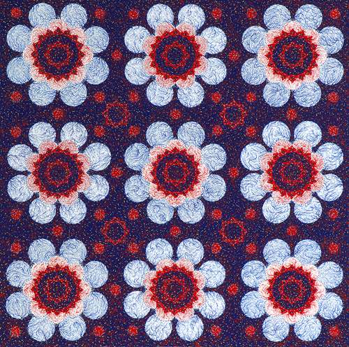 Perché l’ornamento, lungamente esiliato dal canone occidentale come elemento superfluo o sospetto, riemerge qui come linguaggio glocal: attento alle culture visive non egemoniche, aperto al desiderio, alla spiritualità, alla dimensione affettiva del guardare. È un’arte apparentemente “debole”, perché priva di monumentalismo, ma in realtà radicale nella sua prossimità, nel suo farsi presenza quotidiana, nel suo ritessere i nessi tra corpo, oggetto e mondo.